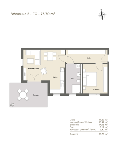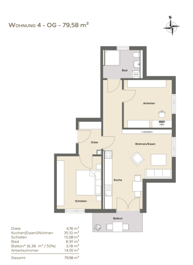 Wohnungen von ca. 54 qm bis ca. 80 qm